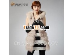 Fur rex rabbit fur vest Hooded Girls' High School long vest with Mongolian lamb trim Free shippi